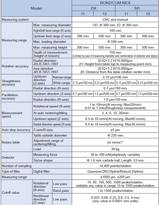 Rondcom NEX is a top class high accuracy roundness cylindrical profile measuring instrument. It is equipped with full new function and meets a need of machined parts high accuracy measurement.